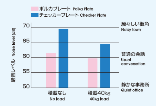 As shown below, a push cart produce less noise on the POLKA PLATE floor.